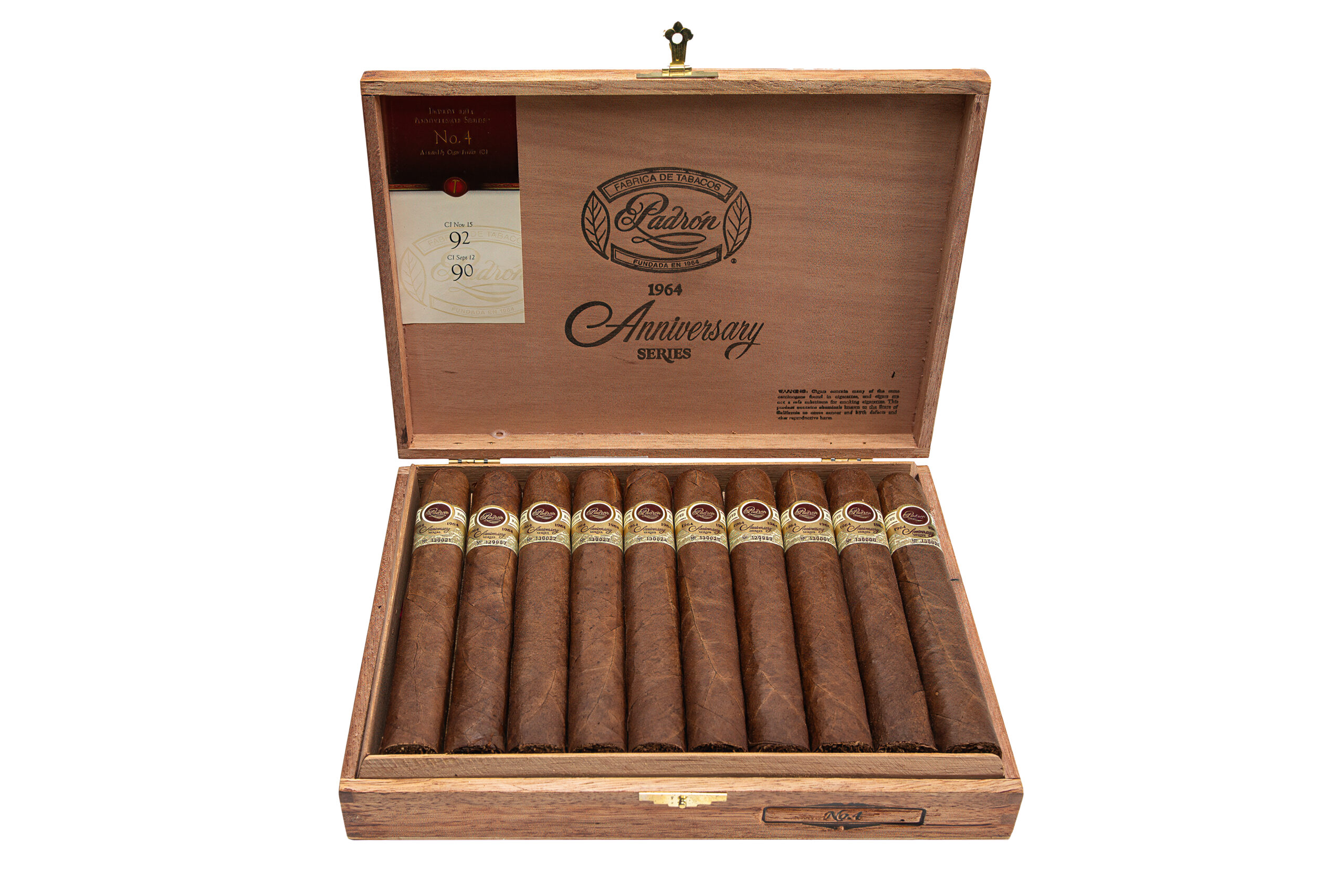 Experience the pinnacle of Nicaraguan craftsmanship with the Padron 1964 Anniversary Series No.4. This box-pressed masterpiece, measuring 6.5 x 60, is meticulously handcrafted from tobaccos aged for a minimum of four years. 1 Available in both Natural and Maduro wrappers, it delivers a sophisticated Medium-Full strength profile. 1 Expect a complex symphony of flavors, including notes of cocoa, toasted nuts, and a light honey sweetness in the Natural, or rich dark chocolate and raisin nuances in the Maduro. 2 Each cigar features a signature double band with an individual label number, guaranteeing its authenticity. 3 Crowned the #1 Cigar of the Year in 2021 with an impressive 97-point rating by Cigar Aficionado, the 1964 Anniversary Series No.4 is a testament to Padron’s enduring legacy of excellence. Box of 20 cigars.